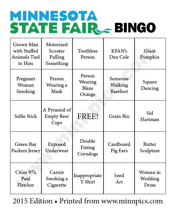 Minnesota State Fair Bingo Board Minnesota State Fair Feeling Minnesota Crying Kids